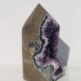 In één steen kunnen agaat en amethist samen voorkomen door een speciaal geologisch proces. Dit gebeurt in geodes, holtes in vulkanisch gesteente, waar mineralen zich in lagen afzetten. Soms ontstaan de verschillende mineralen op verschillende momenten in dezelfde holte, waardoor agaat en amethist zich naast elkaar kunnen vormen. Dit zorgt voor een unieke steen die beide mineralen bevat.