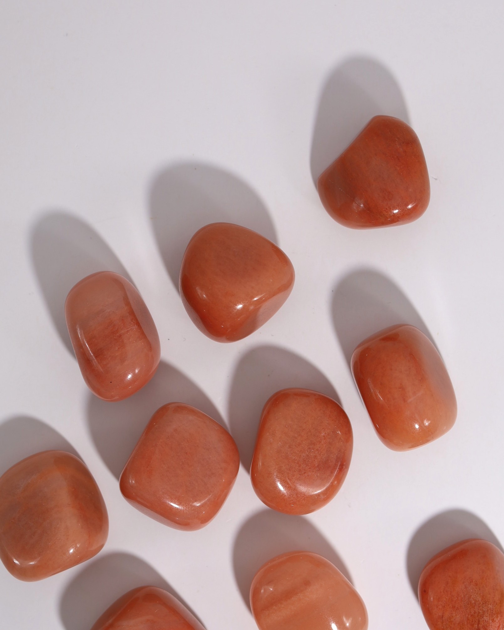 Rode aventurijn dankt zijn kleur aan kleine insluitsels van mica, hematiet of goethiet, die tijdens de kristalgroei in het kwarts worden opgenomen. Deze microscopisch kleine deeltjes zijn gelijkmatig verspreid door het kristal en veroorzaken zowel de karakteristieke rode kleur als de subtiele glinstering waar aventurijn om bekendstaat.