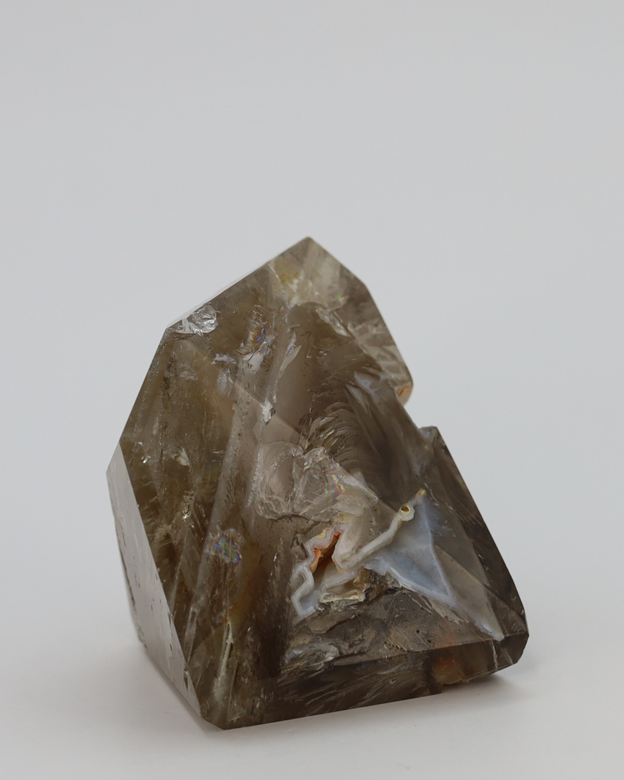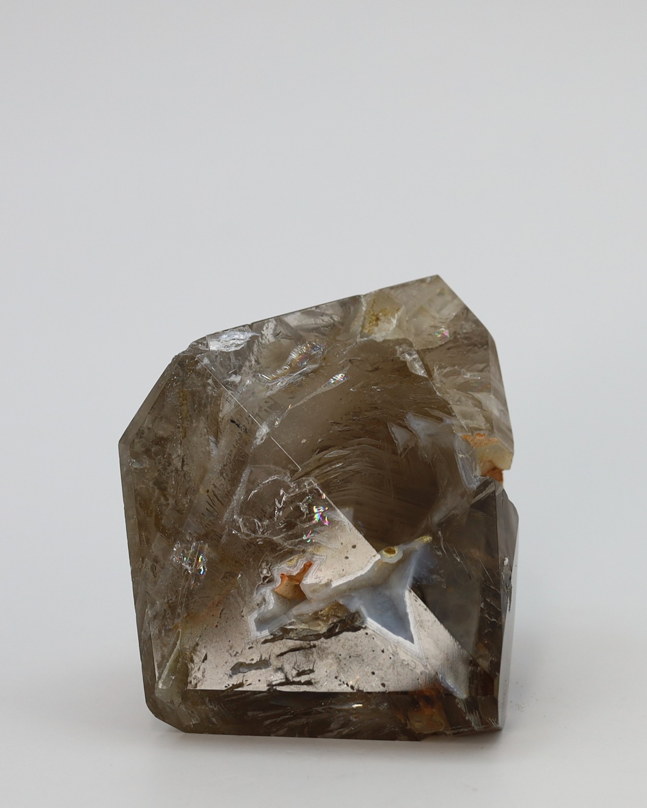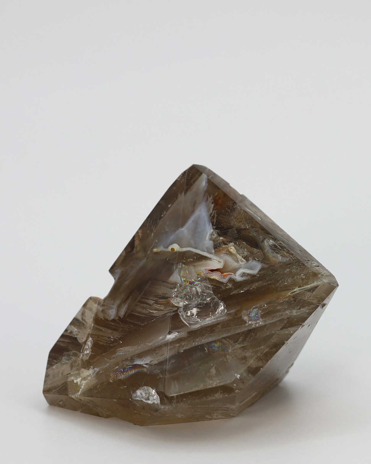 Door dit afwisselend oplossen en aangroeien ontstaat een zogenoemde skelet- of etsgroei. De kristallen ontwikkelen geen gladde vlakken maar trapsgewijze structuren, kleine secundaire puntjes en soms vertakkingen. Oude groeifasen blijven zichtbaar als terrassen, richels en interne holtes waarin vaak mineralen of vloeistoffen worden ingesloten. Hierdoor krijgt elestiaal kwarts zijn complexe, gelaagde opbouw en karakteristieke “gerimpelde” uiterlijk.