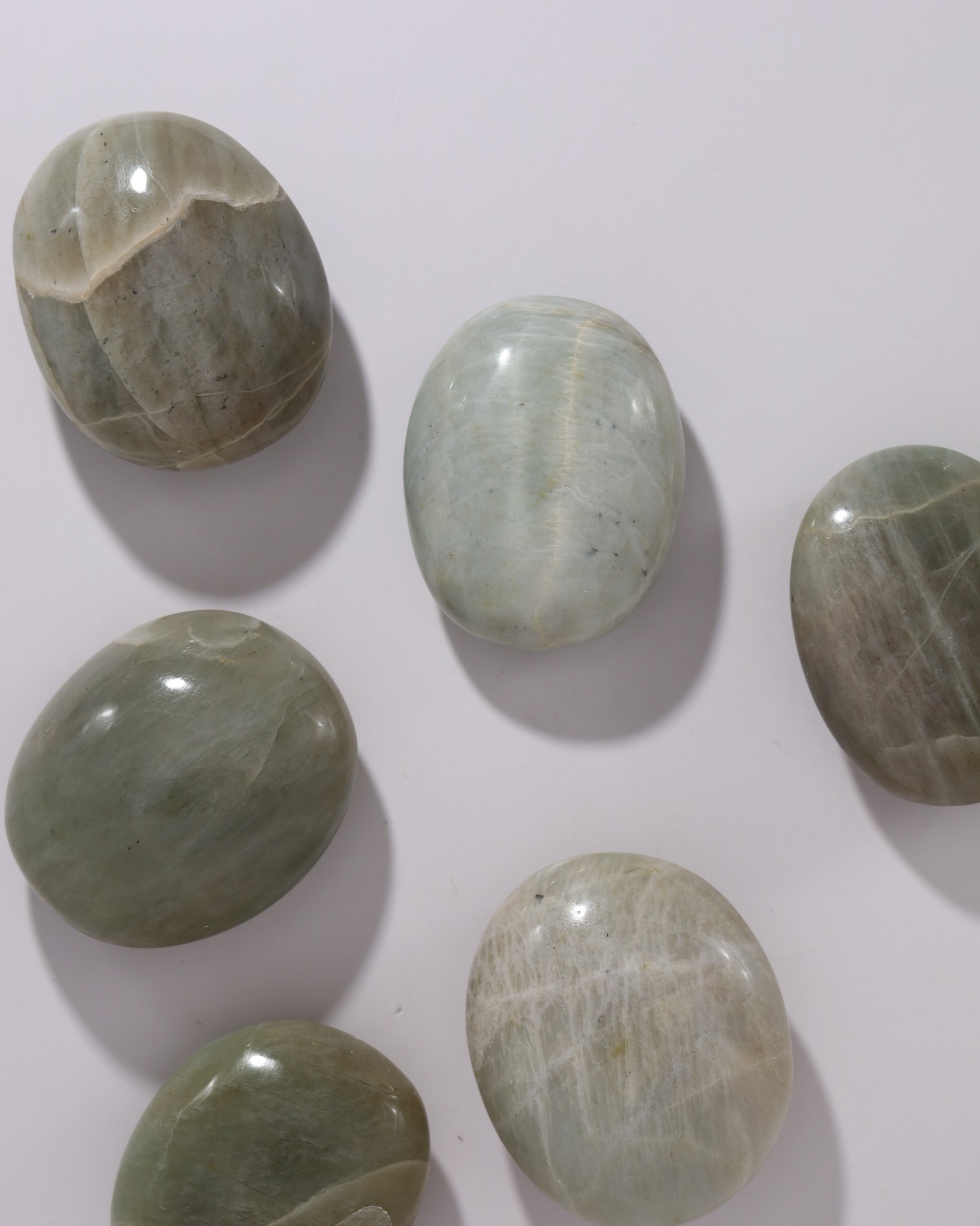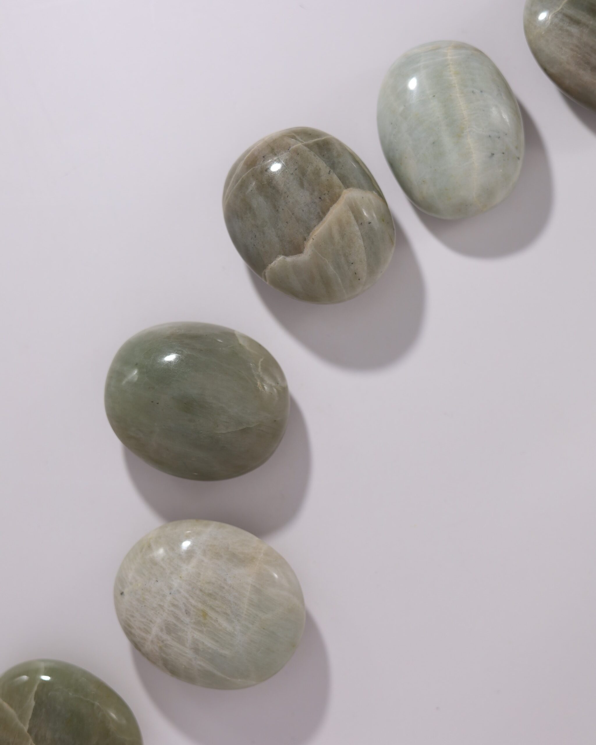 Omdat dit laag voor laag gebeurt, ontstaan de kenmerkende wolkachtige patronen en soms een zachte glans. Die kan doen denken aan de gloed van maansteen, maar wordt hier veroorzaakt door een fijne vezelige structuur in plaats van de typische veldspaatlaagjes. Daardoor lijkt de steen visueel op maansteen, terwijl zijn oorsprong en opbouw eigenlijk heel anders zijn.