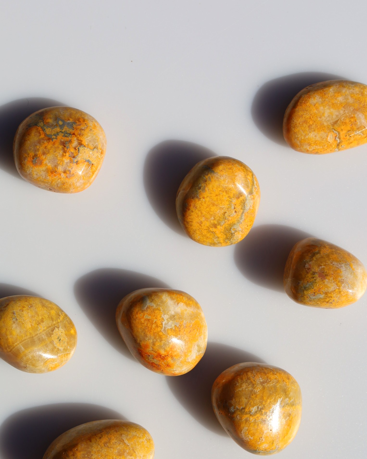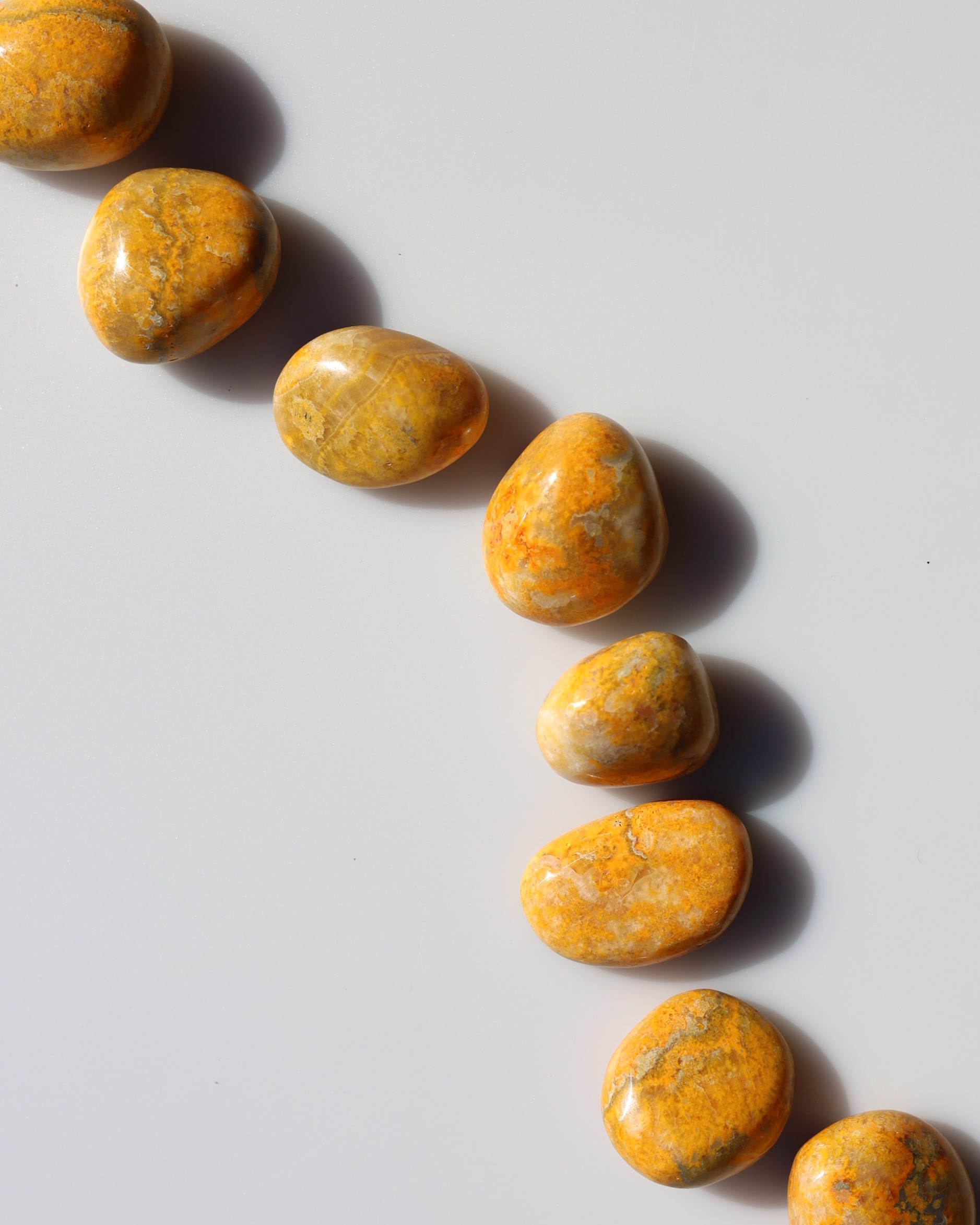 Bumble Bee Jaspis wordt vooral verbonden met het zonnevlechtchakra. De steen staat symbool voor levensvreugde, daadkracht en persoonlijke kracht en helpt om met meer vertrouwen en enthousiasme je eigen pad te volgen. Zijn opvallende geel-zwarte tekening wordt vaak geassocieerd met optimisme, energie en het doorbreken van blokkades. Bumble Bee Jaspis kan helpen om uit je comfortzone te stappen, nieuwe kansen te omarmen en met hernieuwde motivatie en positiviteit in het leven te staan. Het is een krachtige steen voor iedereen die meer lichtheid, zelfvertrouwen en richting wil ervaren.