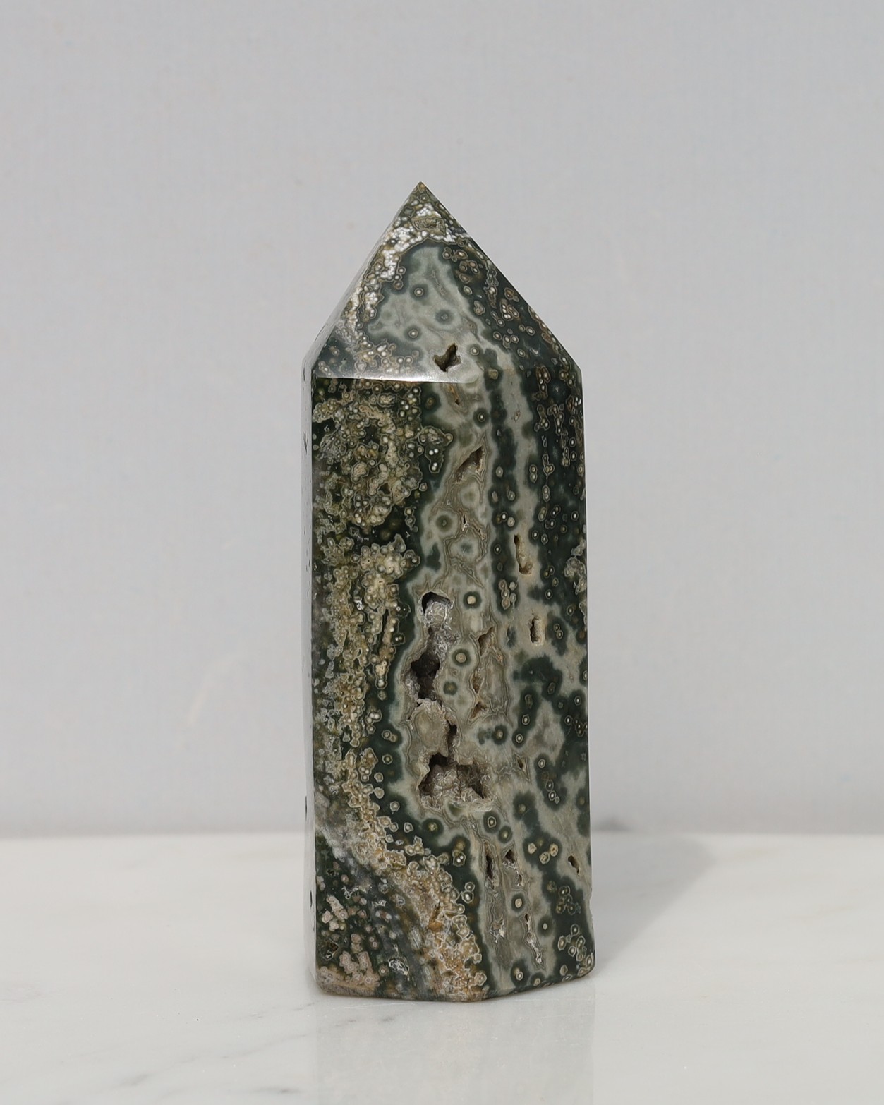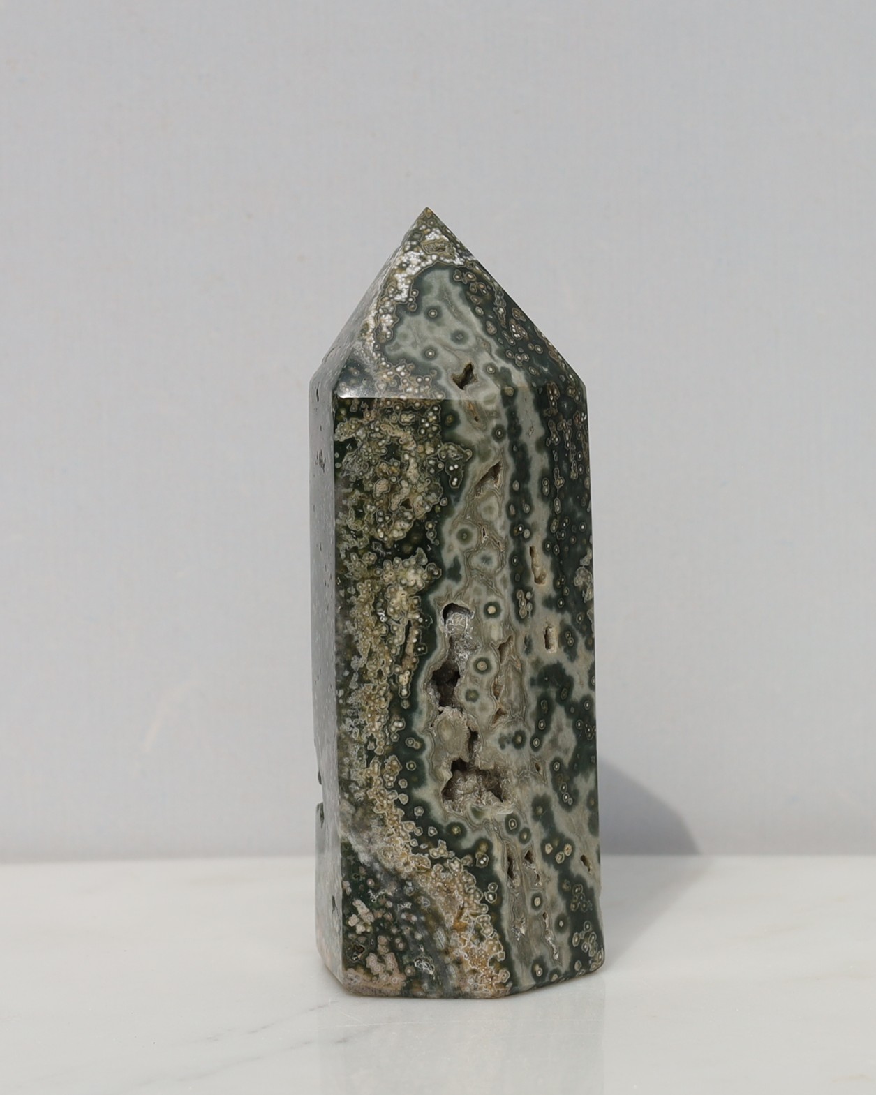 Jaspis kan in vrijwel elke ruimte van je huis worden geplaatst om een rustige en gebalanceerde sfeer te creëren. Je kunt de steen ook bij je dragen om jezelf te ondersteunen bij stressvolle momenten of persoonlijke uitdagingen. Ocean Jaspis is bijzonder geschikt voor slaapkamers, meditatieplekken of studieruimtes, waar zijn kalmerende en inspirerende energie een gevoel van rust en focus kan brengen. Hij kan ook op een werkplek worden geplaatst om creativiteit en helder denken te stimuleren.