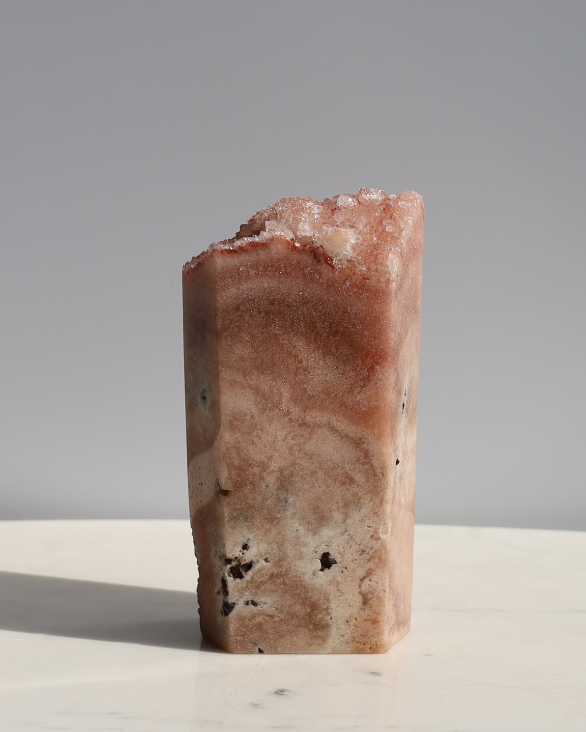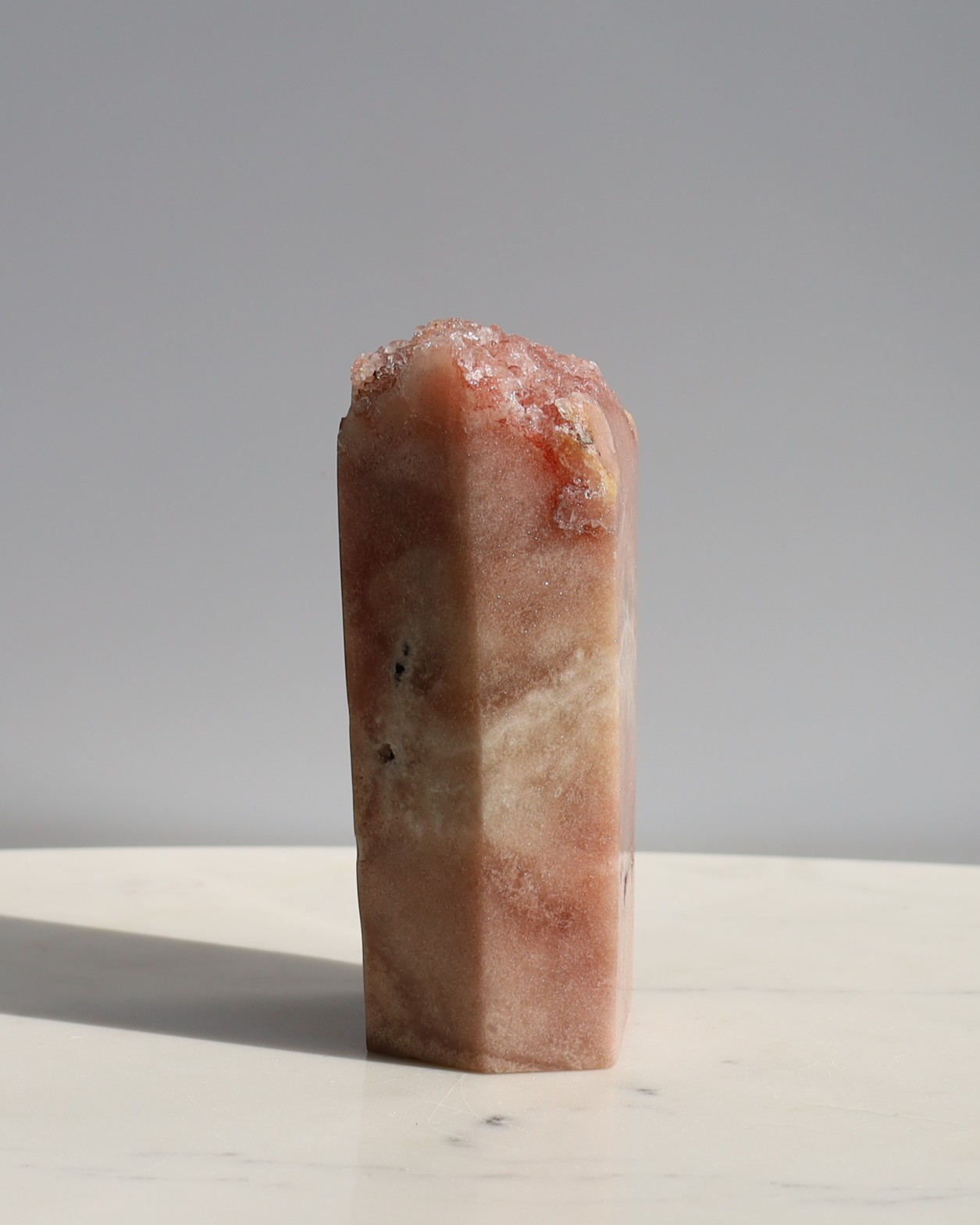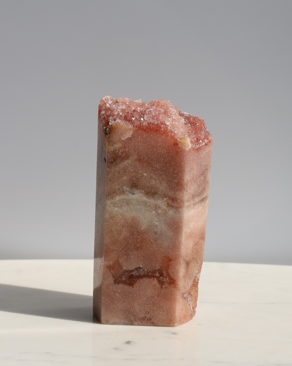 Roze amethist behoort tot de kwartsfamilie, net als gewone amethist, maar het is geen pure amethist zoals vaak wordt gedacht. In geologische termen gaat het om een combinatie van chalcedoon en kwarts.