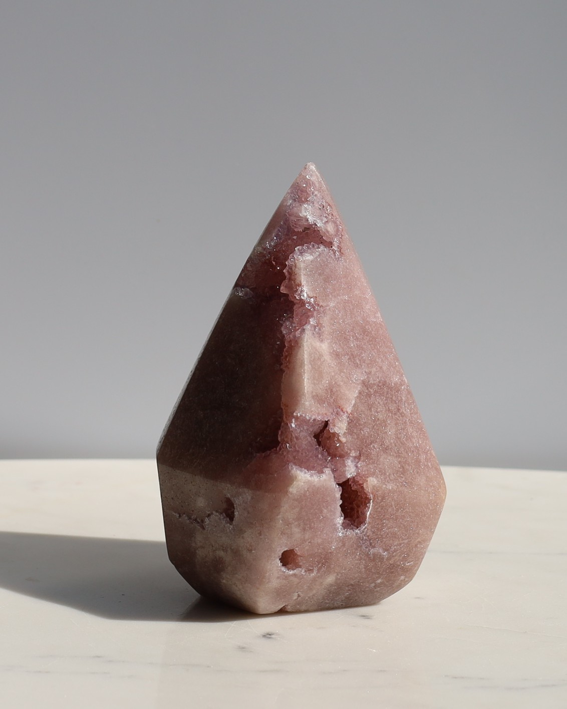 De naam “roze amethist” komt voort uit de visuele gelijkenis met gewone amethist: dezelfde kristalstructuur en dezelfde kwartsfamilie, maar dan in een roze kleur. Omdat het uiterlijk zo lijkt op amethist en de steen vaak in dezelfde vormen (clusters, geodes, puntjes) voorkomt, is de naam vanuit de edelsteenhandel blijven hangen.