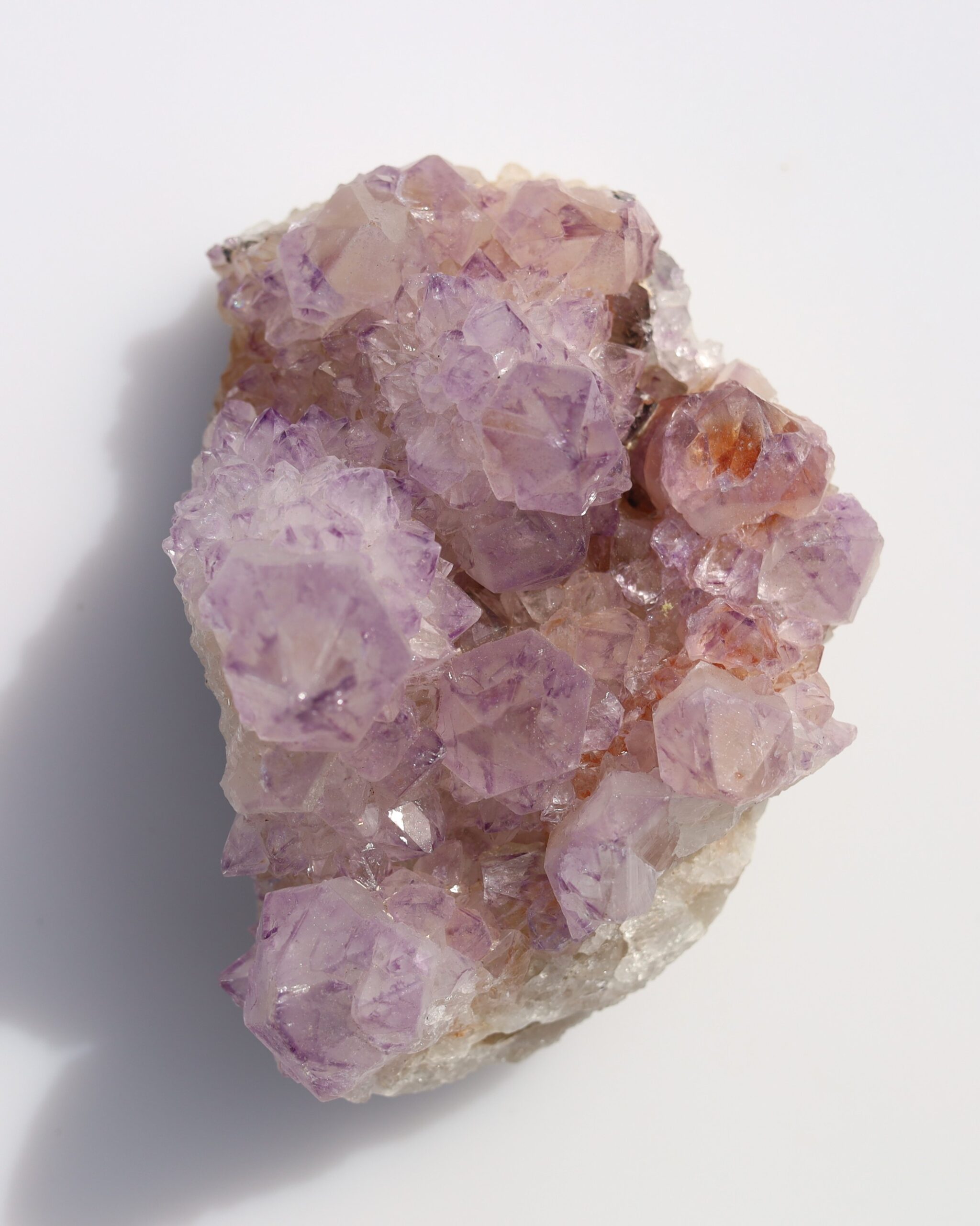 Spiritkwarts komt in verschillende kleuren voor. Paarse varianten danken hun kleur aan ijzer in het kristalrooster in combinatie met natuurlijke straling, terwijl roze tinten ontstaan door mangaanhoudende insluitsels of variaties in de chemische samenstelling tijdens de groei. Doordat de kleine kristallen later ontstaan dan het moedergkristal, bevatten ze vaak minder kleurstof, waardoor de uiteinden meestal lichter van tint zijn dan de kern.