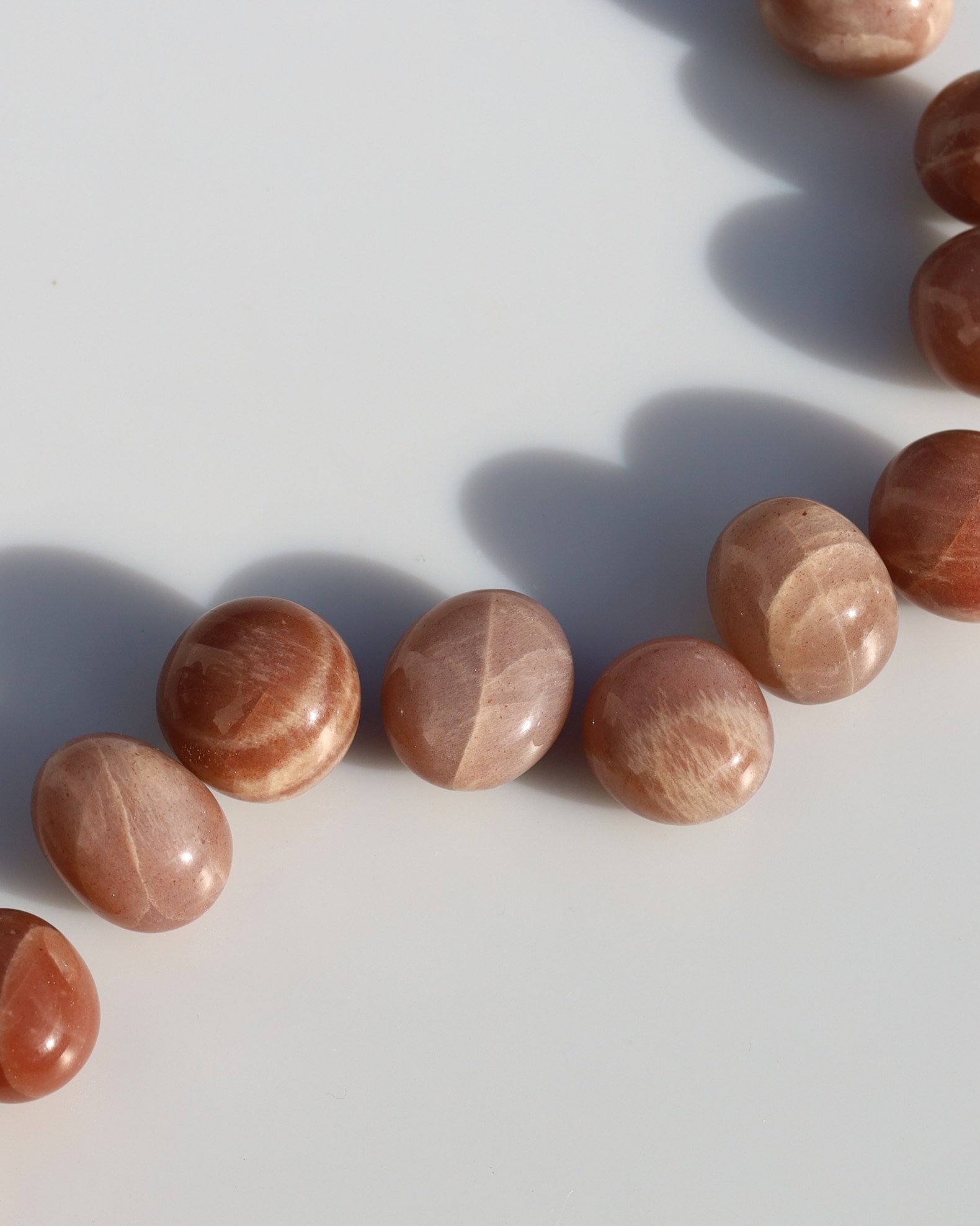 Zonne-maansteen draagt de zachte, intuïtieve energie van maansteen, aangevuld met de warme levenskracht van zonnesteen. Maansteen wordt traditioneel verbonden met intuïtie, innerlijke rust en het volgen van je gevoel. Ze nodigt uit tot vertragen, voelen en vertrouwen op je innerlijke kompas en helpt emoties te verzachten en in balans te brengen. Hierdoor ontstaat ruimte voor zelfinzicht en persoonlijke groei. De zonnesteen voegt hier een actiever aspect aan toe: levensvreugde, zelfvertrouwen en motivatie. Hij wekt je innerlijk vuur en helpt ideeën daadwerkelijk in beweging te brengen. Waar maansteen laat luisteren, helpt zonnesteen handelen. Samen vormen ze een harmoniserende steen tussen hoofd en hart, tussen ontvangen en creëren, tussen zijn en doen. Zonne-maansteen ondersteunt je om zowel helder te voelen als daadkrachtig te handelen en herinnert eraan dat intuïtie en actie elkaar niet tegenwerken, maar elkaar juist versterken.